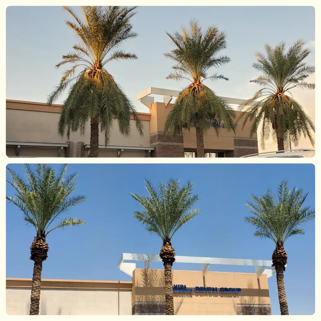 We performed a professional palm trimming service for a commercial plaza in Avondale, AZ, improving the visibility and safety of the entire property. The tall palms had overgrown fronds and debris hanging dangerously above the parking area and storefronts. Our skilled team at Trusted Tree Care trimmed all palm crowns in a single day, enhancing the curb appeal, preventing hazards, and creating a cleaner, safer space for customers and staff. This fast and efficient palm service is part of our commitment to keeping commercial properties safe and attractive year-round.